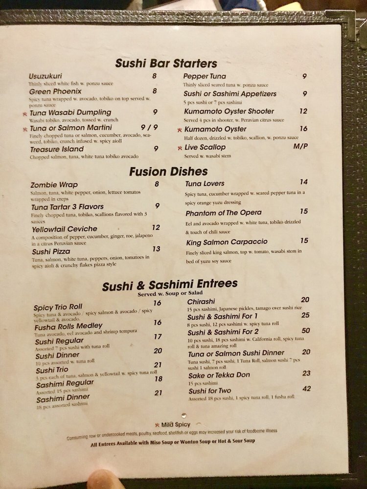 10 pieces sushi and 18 pieces sashimi with California roll, spicy tuna roll and Tuna Amazing roll.